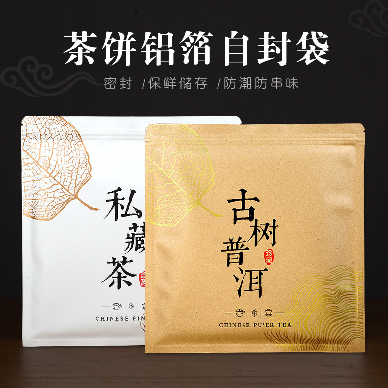厚いアルミ箔コレクションシール袋357g茶餅包装袋クラフト紙白茶保存袋保存自封袋