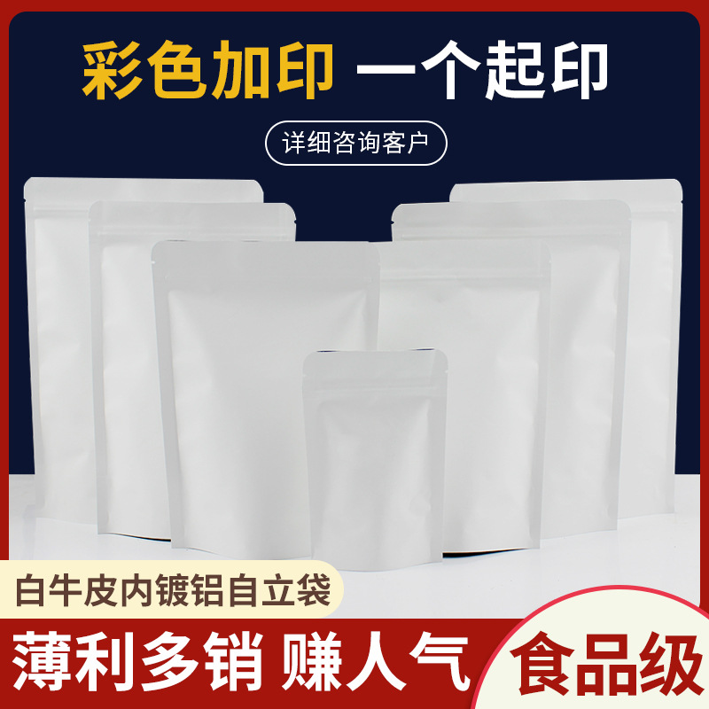 アルミメッキ白クラフト紙袋シール食品袋間食茶葉包装袋自立クラフト紙自封袋現物