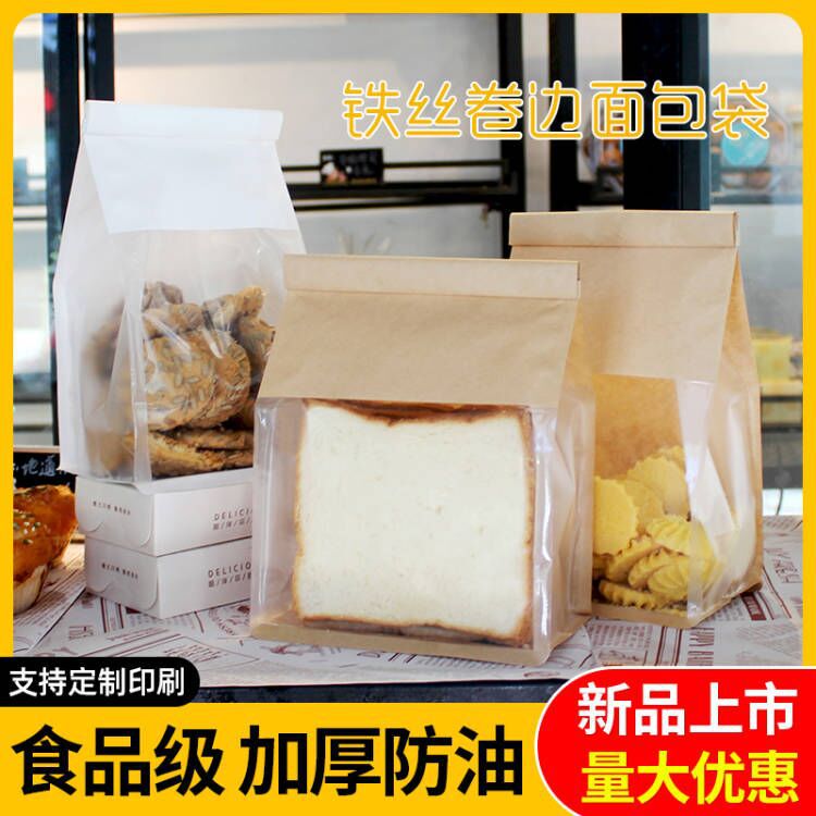 トーストパン袋焙煎包装袋クラフト紙自封袋透明開窓八辺封鉄線巻き縁封袋