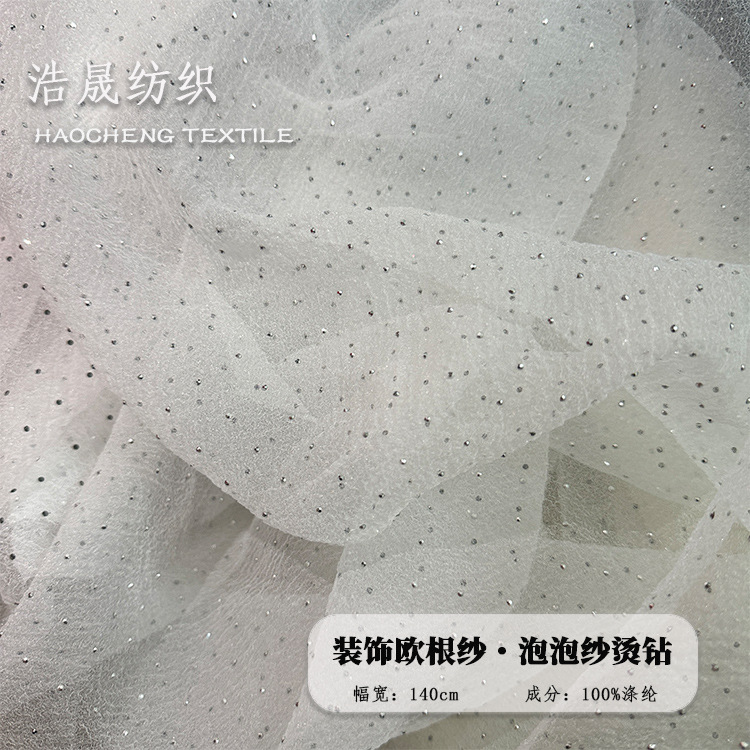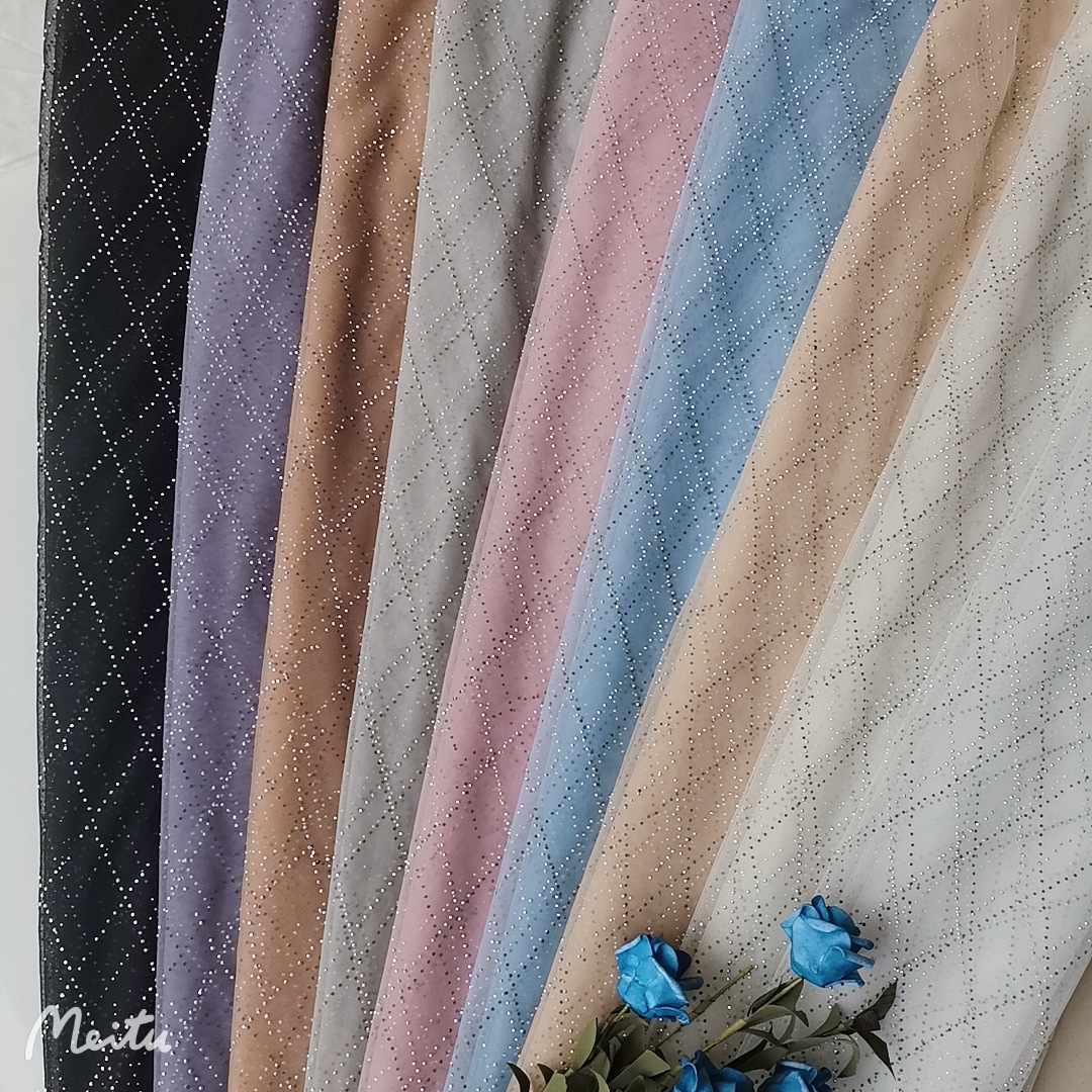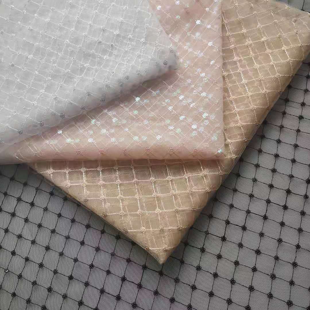 热销款无弹力涤纶菱形小椭圆点提花网纱 手感脆 不是很柔 但质感好 纱质紧实 提花花型整洁 不易勾丝 不易变形 花型简单大气 品质不错的一款提花网纱
