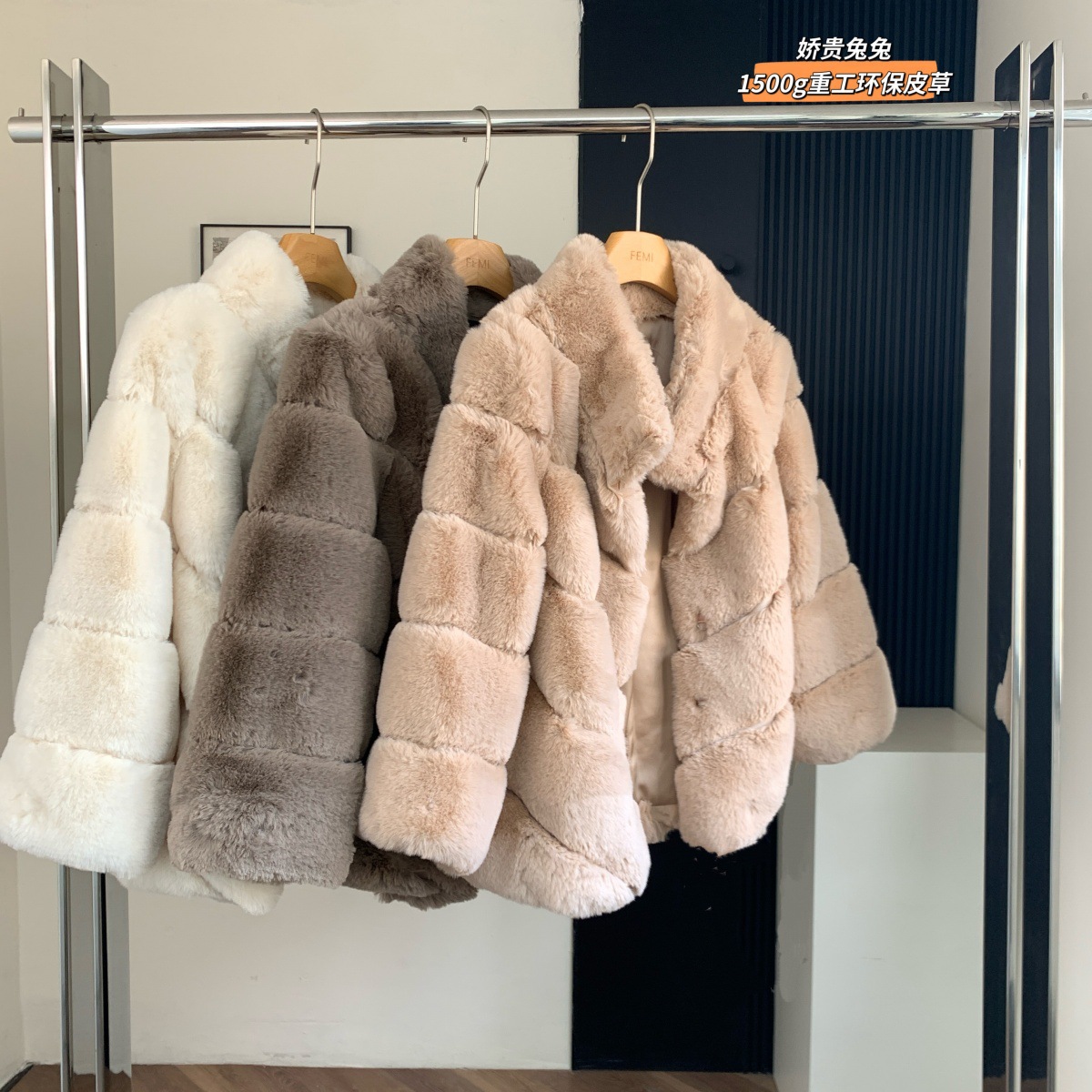 娇贵兔兔 1500g重工环保皮草 以假乱真千金毛毛外套保暖