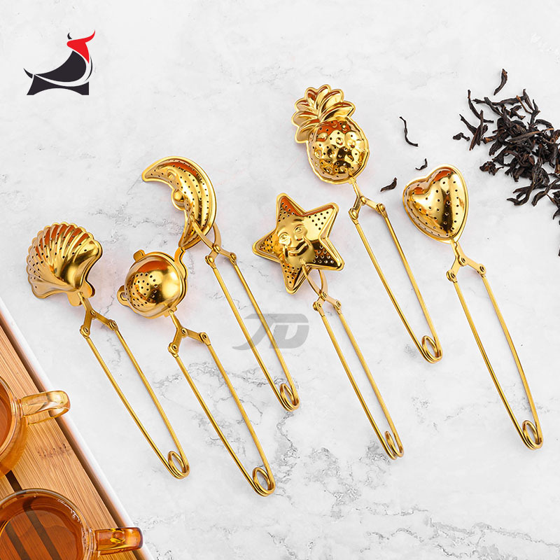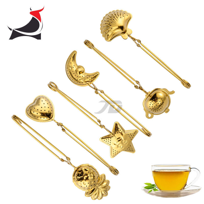 304ステンレス鋼茶ボール茶こしフィルター茶の葉のフィルター金色の茶のクリップの茶器のギフトの台所用具