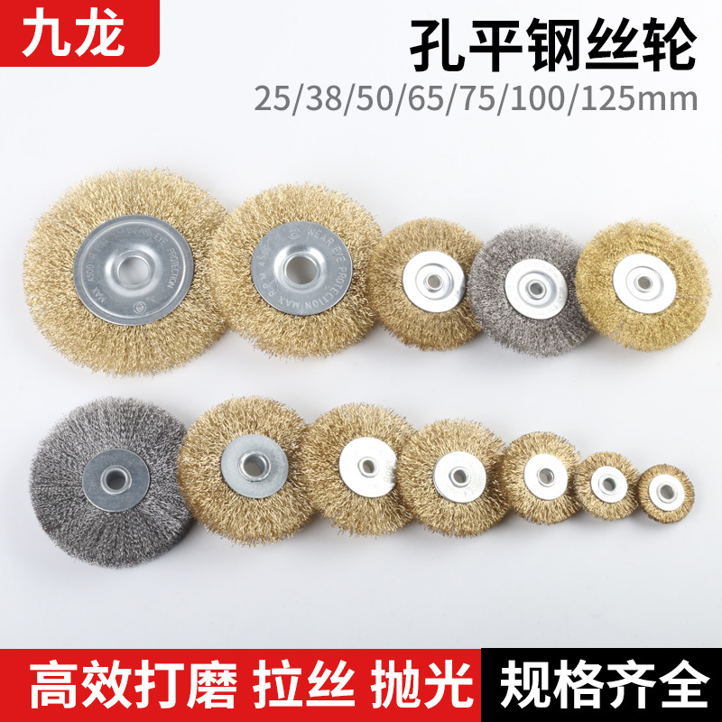 平型スチールホイール平形銅メッキ黄鋼線ブラシ砥石機用研磨平行ステンレス鋼錆除去ブラシ