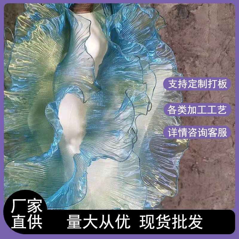 深海藍のしわのハスの葉のレースの補助材料の幻彩のグラデーションの糸のスカートはdiyの服装のデザイナーの生地を飾ります。