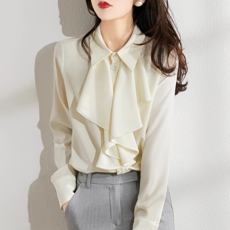 リサ風のシルキーパールホワイト、セレブ愛用、多様な着こなし方ができる、2026年小香風シャツ、インスタ映えする女性らしいスタイル。