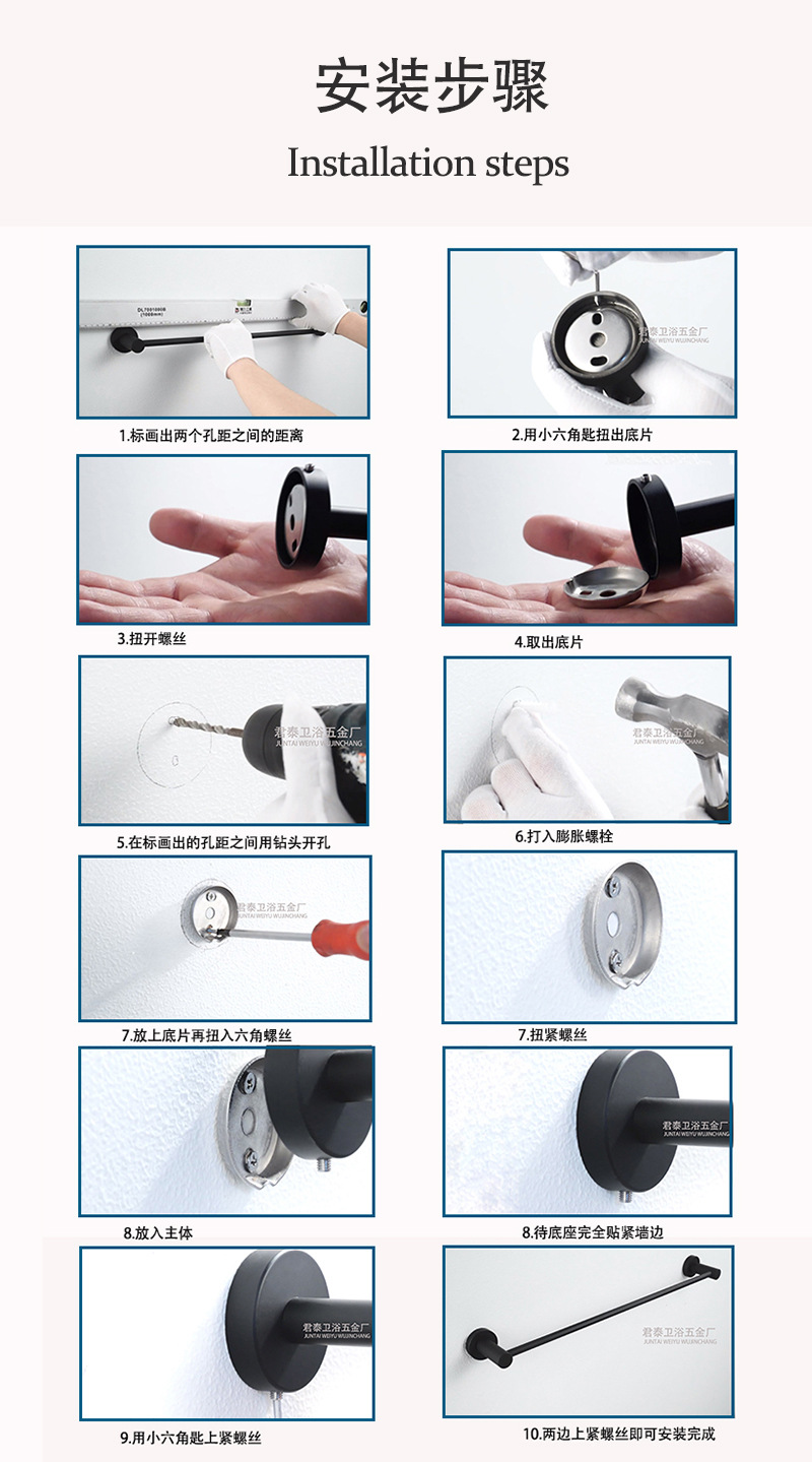 8003ダブルバー黒色ステンレス浴室タオルラックトイレタオルラック浴室ペンダント304クロスボーダー代発