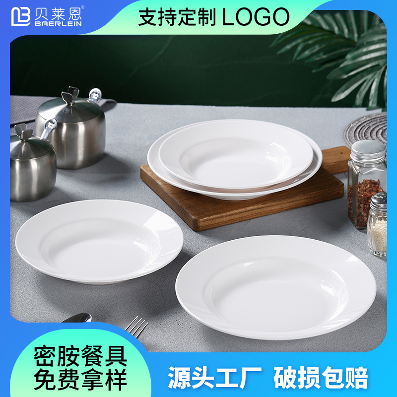白い深皿ホテルレストランホテル商用メラミン皿模造磁器プラスチック円形広辺深皿洋食皿