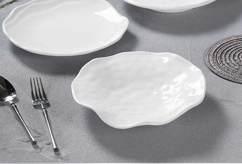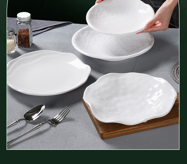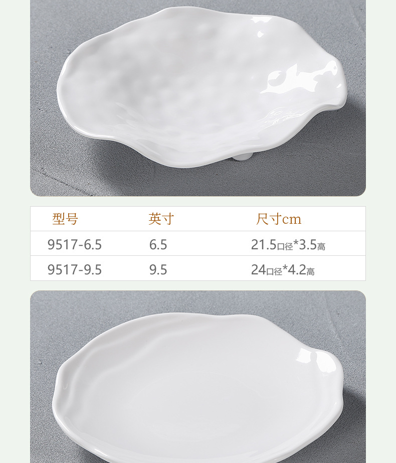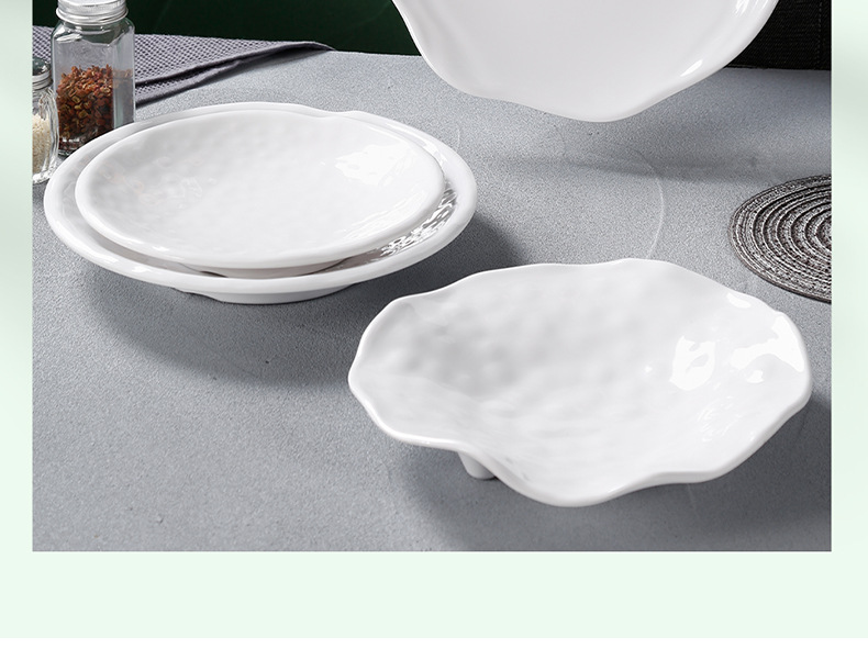 白い両耳アワビ皿ホテルレストランホテル商用メラミン模造磁器プラスチック円形蓮皿深皿