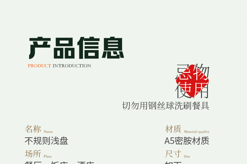 仕様 A5メラミン厚い不规则な料理皿
