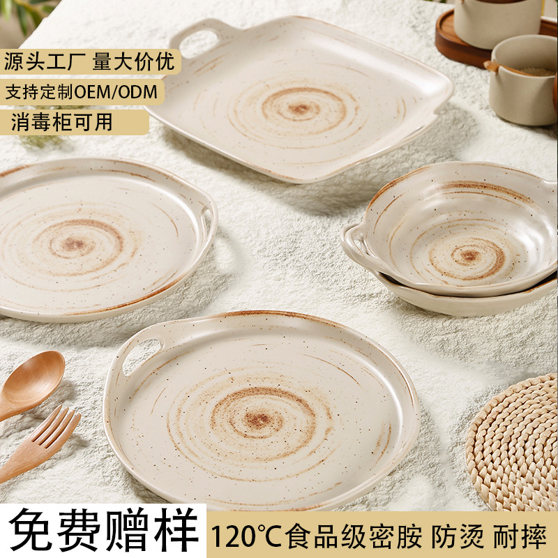 メラミンプレートクリエイティブ双耳小フライパン日本と韓国のバーベキュープレート商業レストランサービングプレートディナープレート模造磁器食器卸売