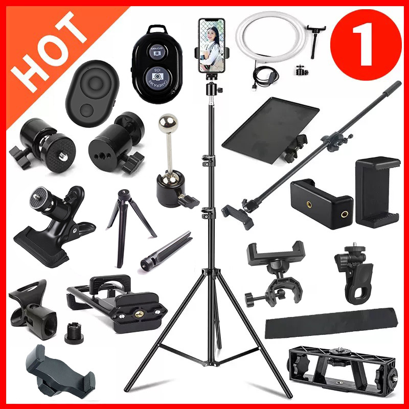 多機種対応スマホホルダー、多機能三脚スタンド、アクセサリー、三方向アダプター、二重固定クリップ、ポータブル折りたたみ式