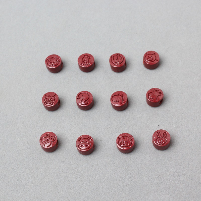 朱砂大孔径十二生肖配件配饰 高含量紫金砂大孔十二生肖DIY配饰