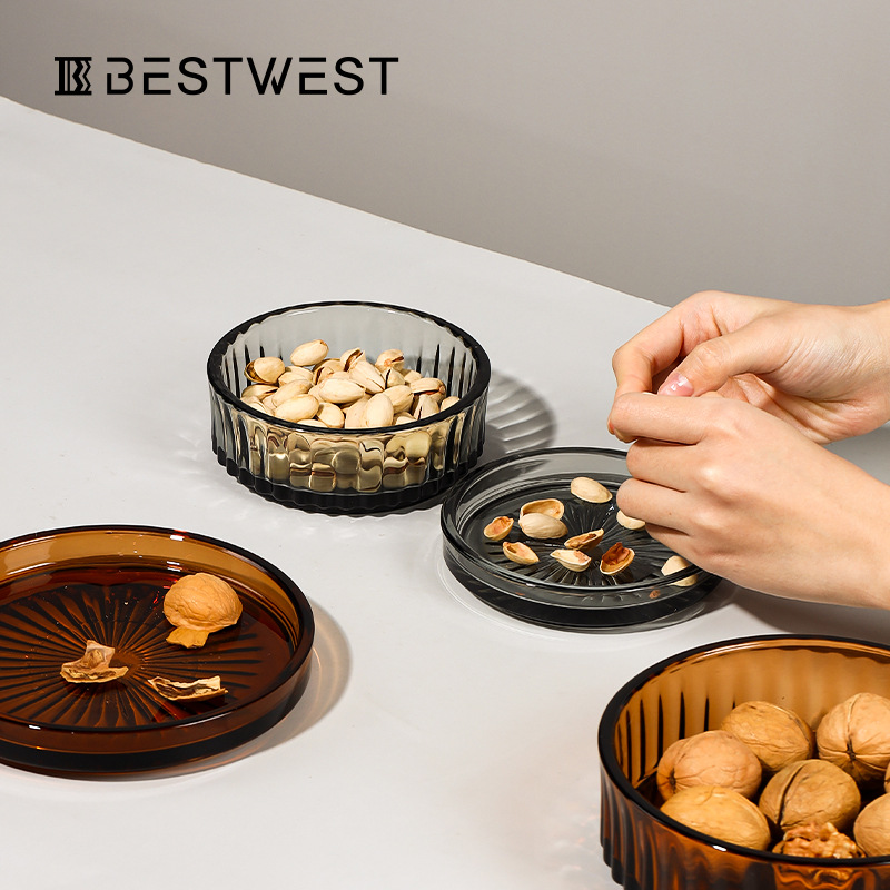 Best westクリエイティブ高級贅沢蓋付きガラスドライフルーツ皿家庭用リビングルームナッツフルーツ皿