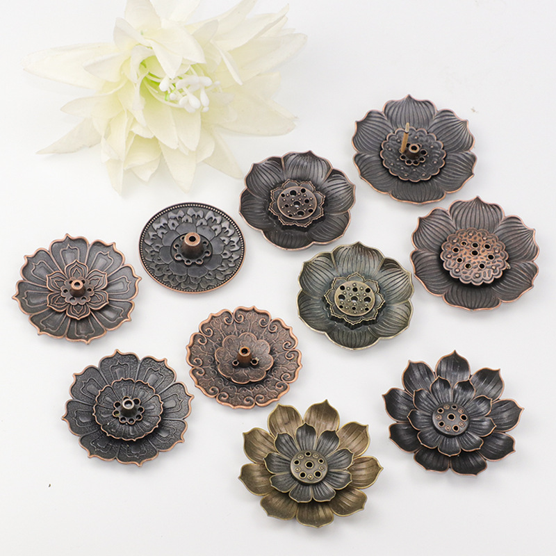 升の香炉の合金の蓮の花の香りはハスの花の穴の線の香炉の香座の家庭に仏陀の禅の意の香を供えます。