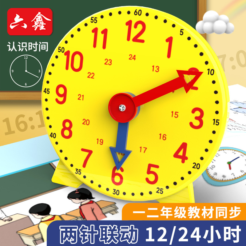 時計模型児童学習時間教具三針連動時計模型一二年生時計面時学具