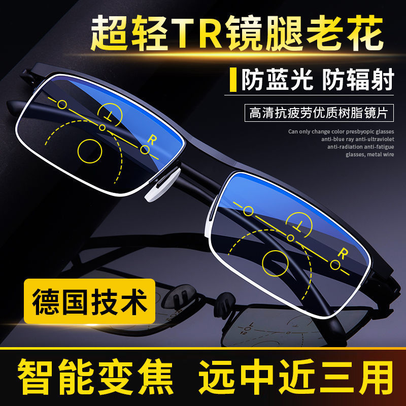 老眼鏡男遠近両用ハイビジョン漸進多焦点自動調節度数防ブルーライト老人老眼鏡