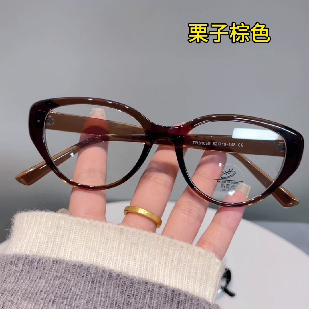 2024年新型猫眼黒枠メガネ枠女性すっぴん神器は度数近視防止ブルーレイ痩せ鏡フレームを配合することができます。