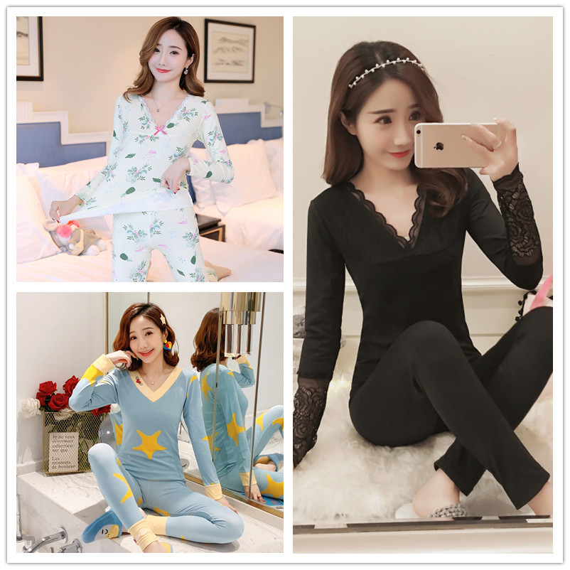 暖かい下着の女性の長袖の冬の美体の保温のパジャマのレースの修身の底のシャツの薄いタイプの秋の服の秋のズボンのスーツ