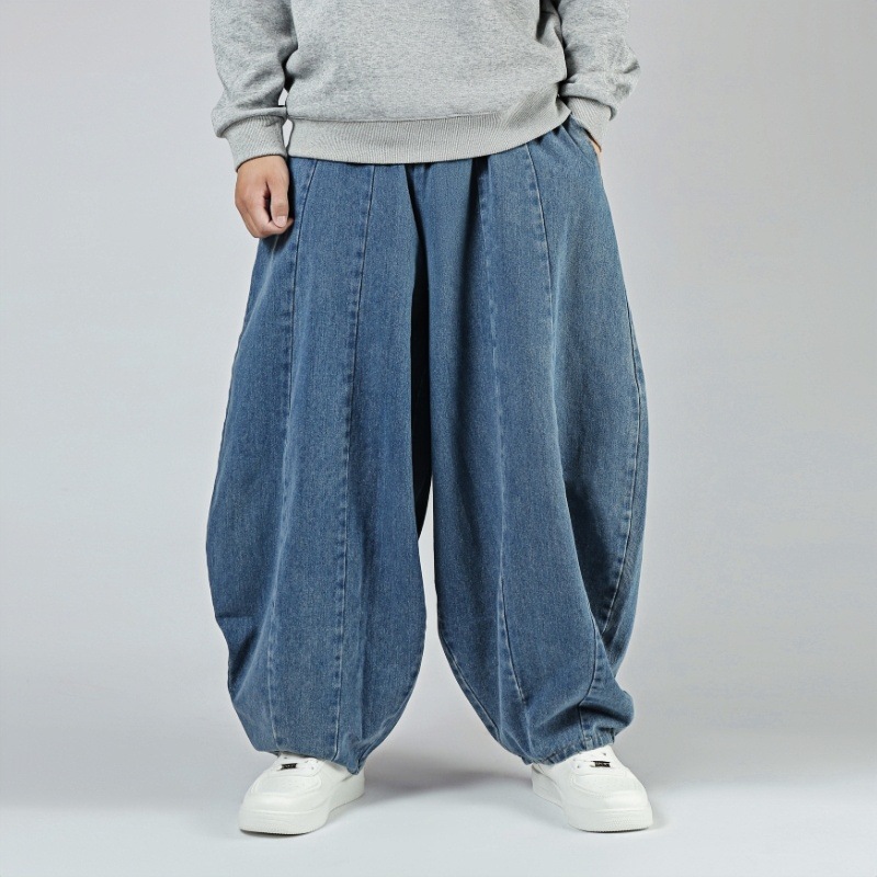 2025 春と秋のメンズ新ランタン大きいサイズ日本のレトロルーズハーレムストレートパンツ香港スタイルワイドレッグジーンズ