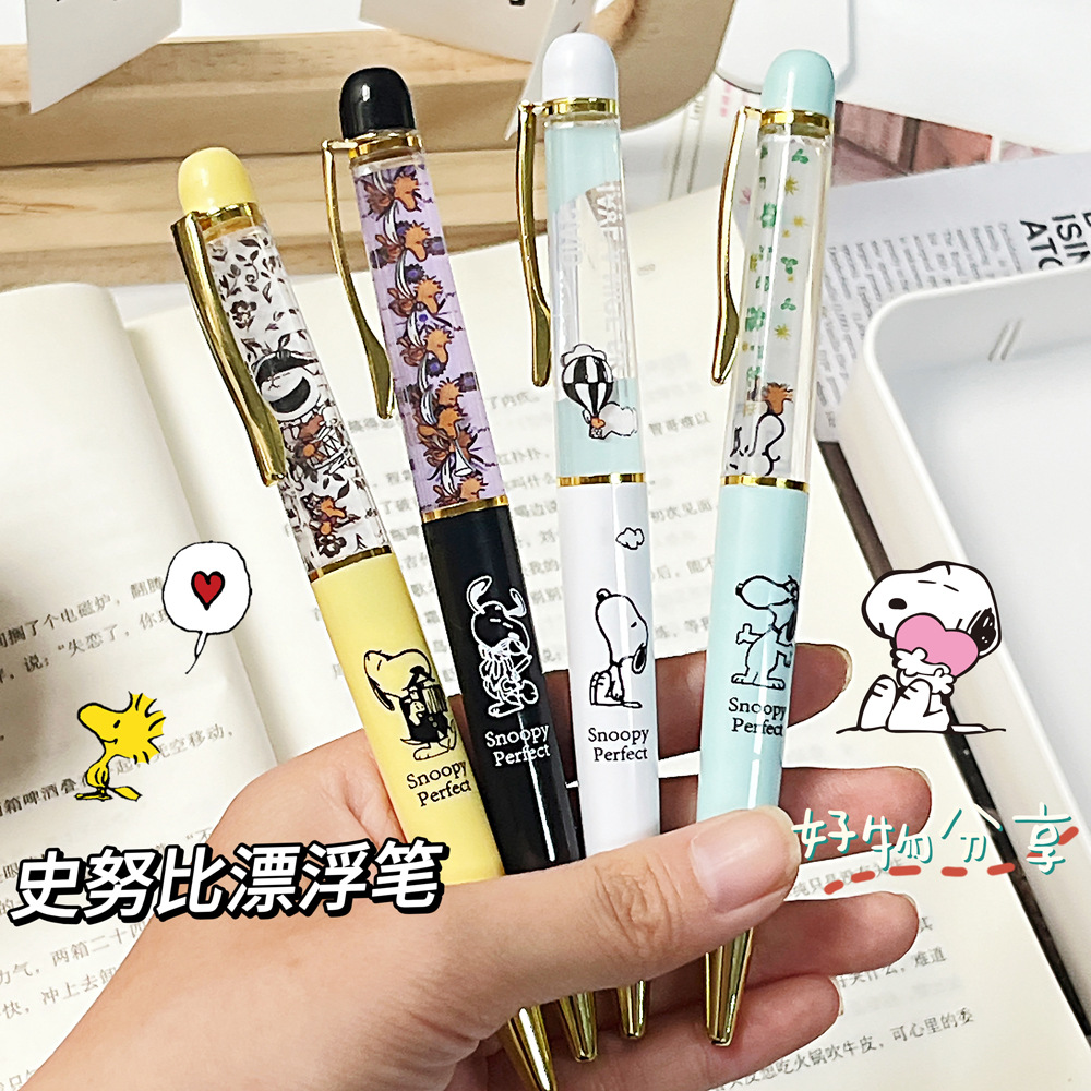 高颜值史努比漂浮笔水晶笔可换中性笔芯卡通高颜值黑色速干批发