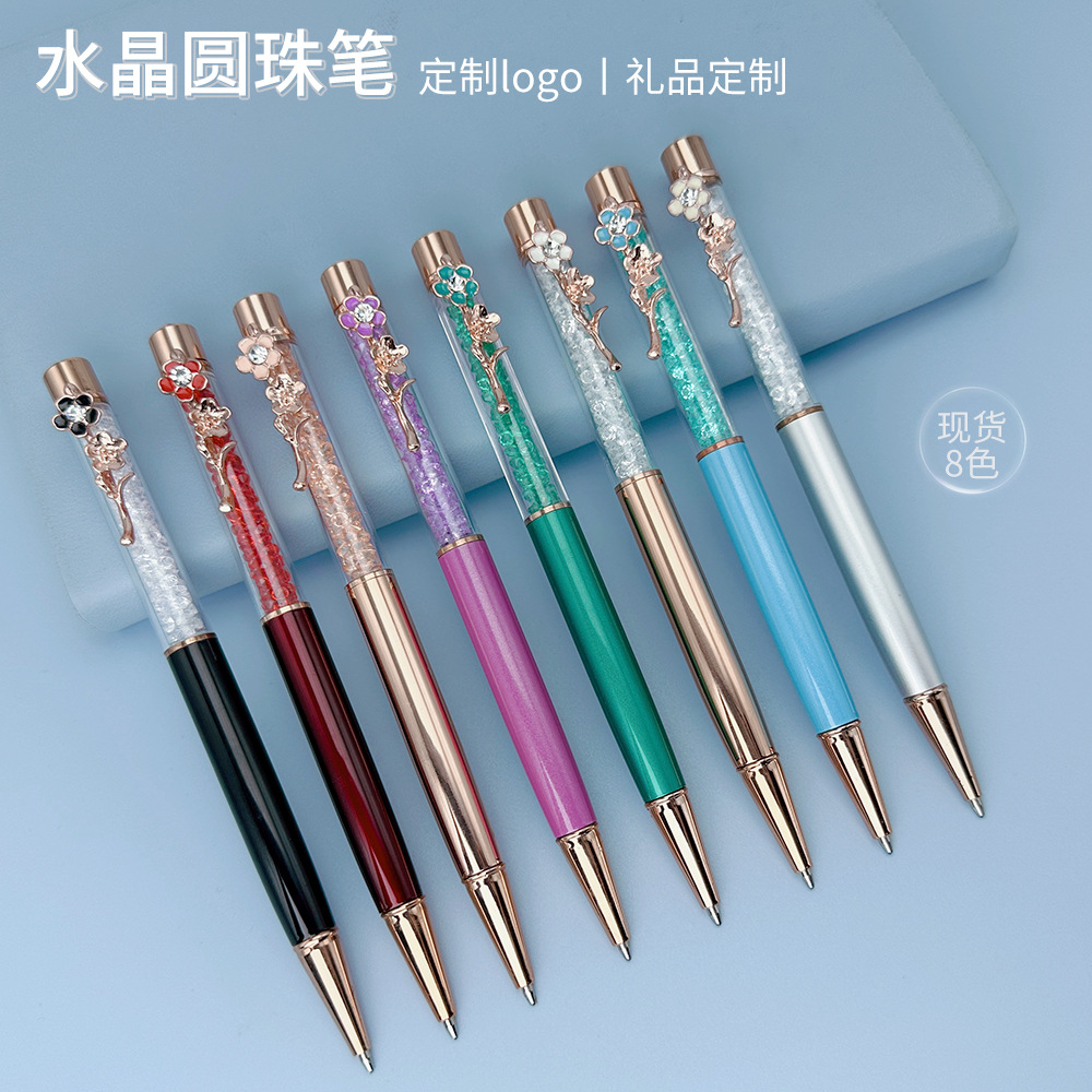 筆海の創意の美しい水晶のビジネスの金属の筆の花の高い顔の値の贈り物のボールペンは字を刻んでlogoを作ることができます。
