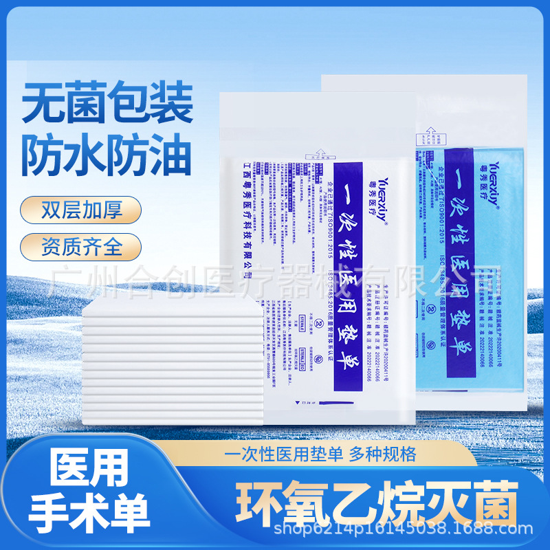粤秀一次性医用垫单无纺布中单手术单防水床单洞巾孔巾灭菌独立装