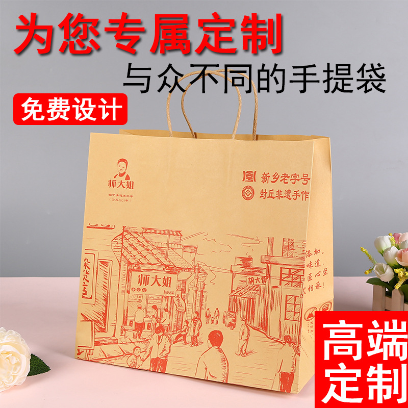 クラフト紙手提げ袋製ギフトバッグプレゼント手提げ袋ミルクティー服装ビスケット包装印刷ロゴ