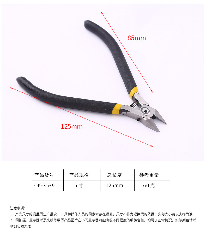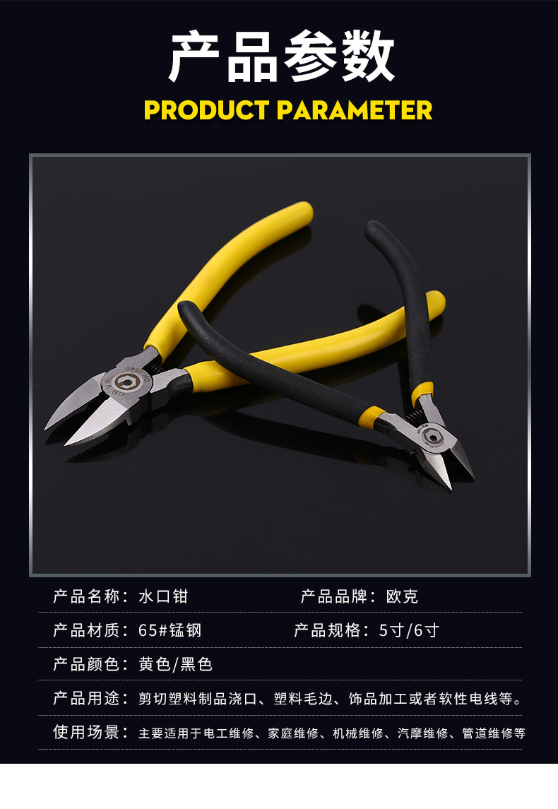 5寸6寸8寸偏口钳工业级模型钳塑料水口钳高硬度斜口钳电子水口钳