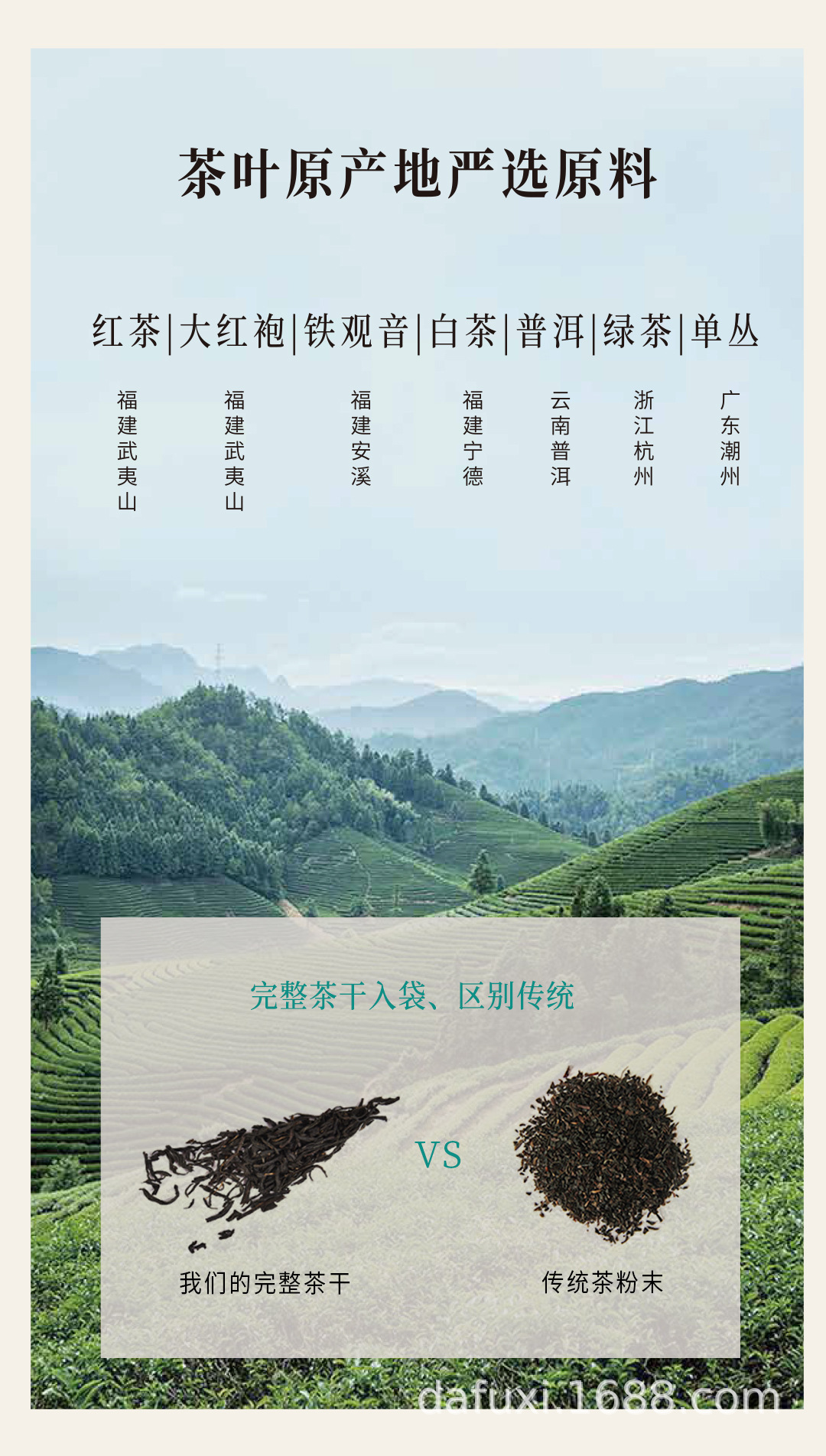 四季正山小種紅茶、ホテル白茶、鉄観音、大紅袍緑茶、ティーバッグ、原葉茶バッグ