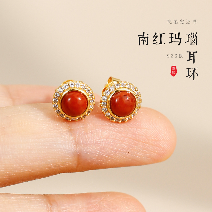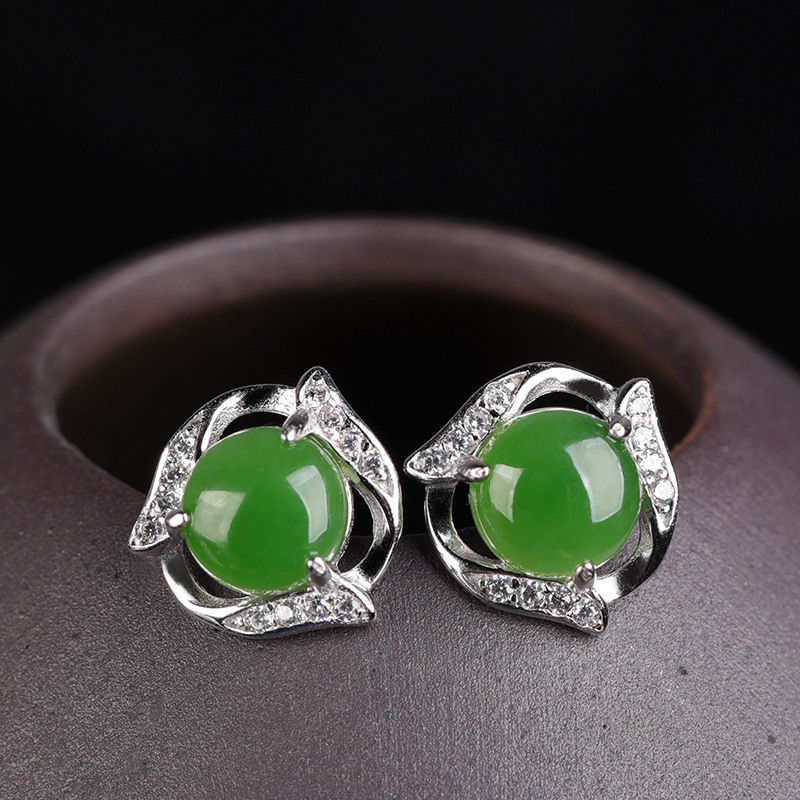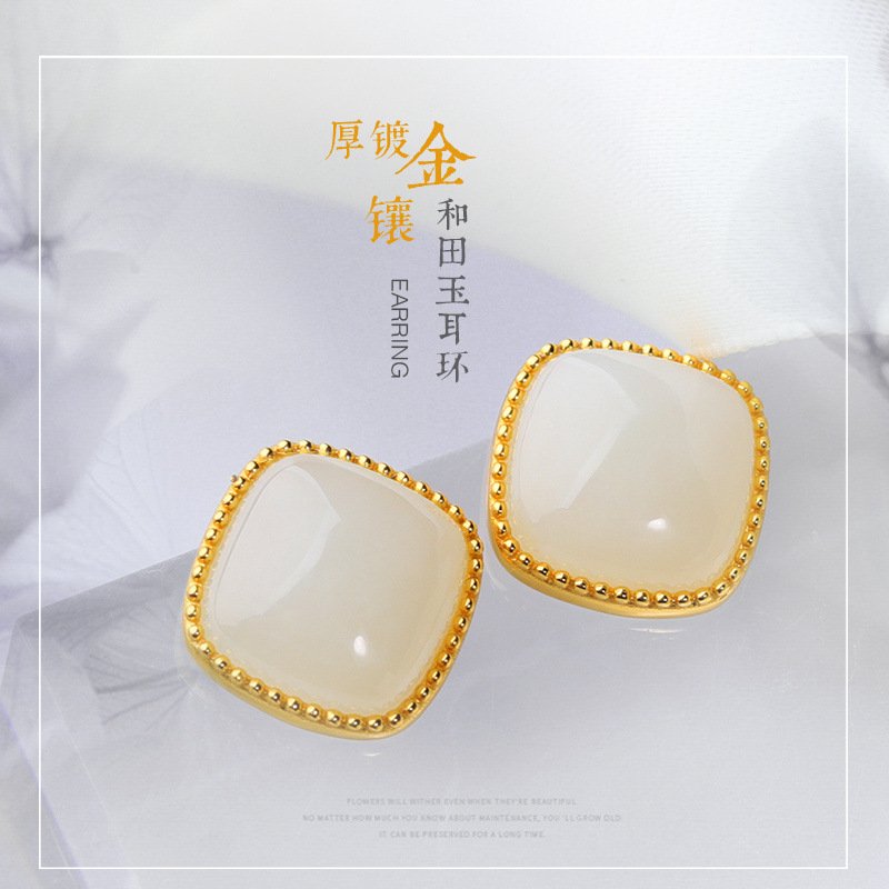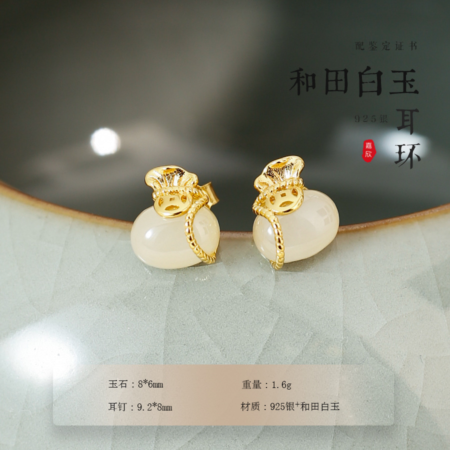 【商品名称】:925银镀金镶嵌和田玉耳钉