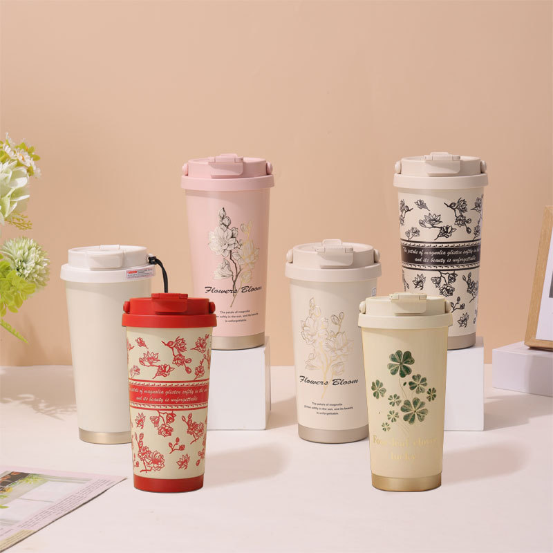 新しいスズランフラワー 316 ステンレス鋼断熱カップ、見栄えの良いコーヒーカップ、ポータブルハンドル付きダブルドリンクカップ