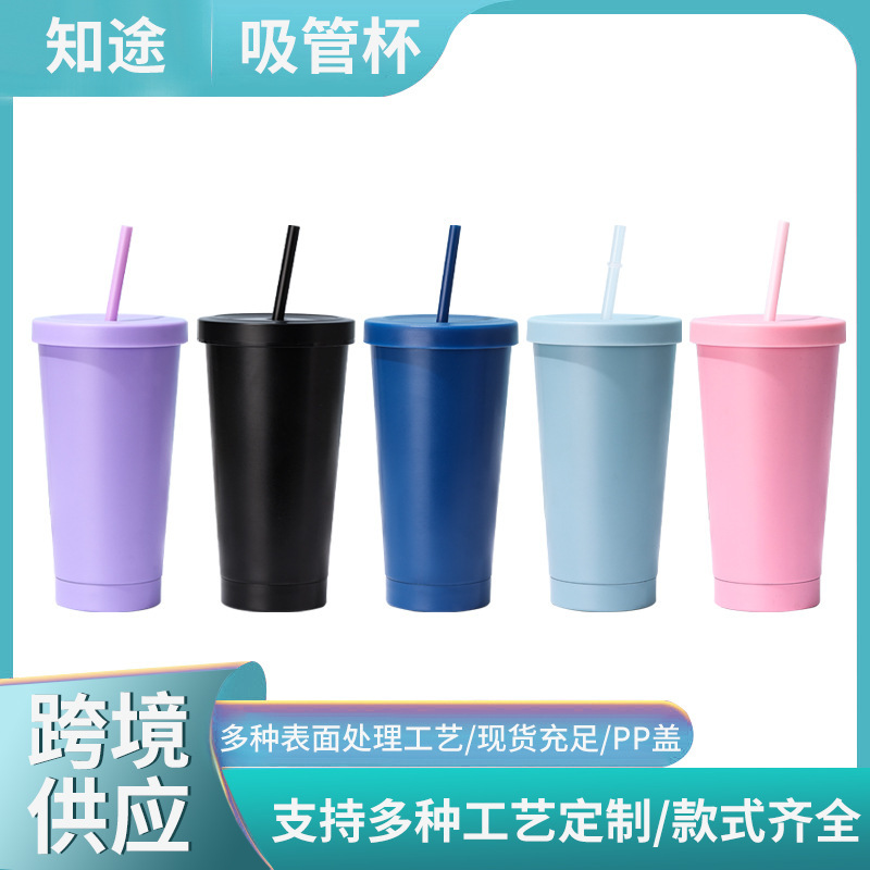 クロスボーダー 304 ステンレス鋼ストローカップ断熱車ストローミルクティーカップ高価値シンプルなストローコーヒーカップ