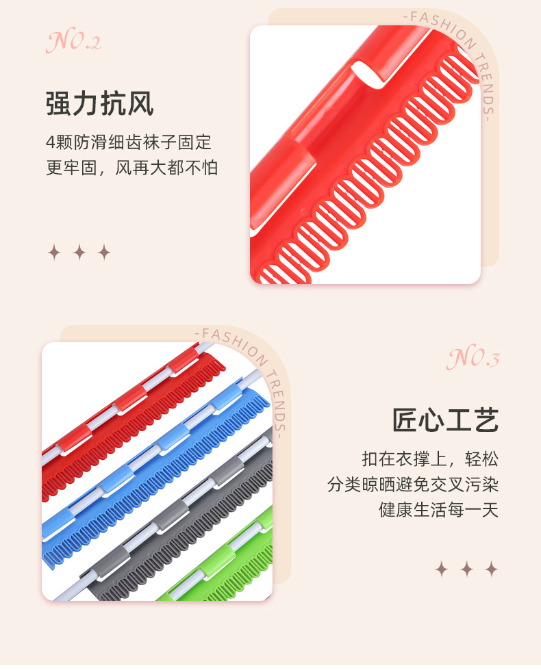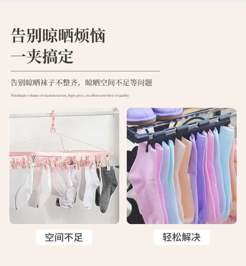 靴下は怠け者のプラスチックの靴下を挟んで、すぐに靴下を干します。