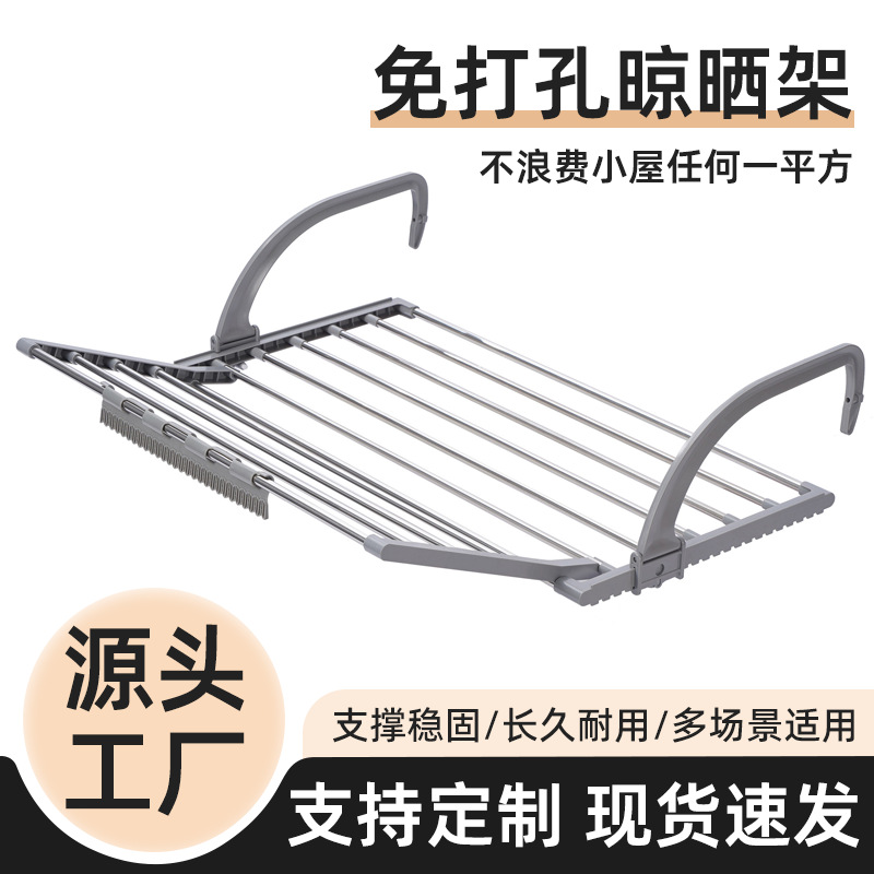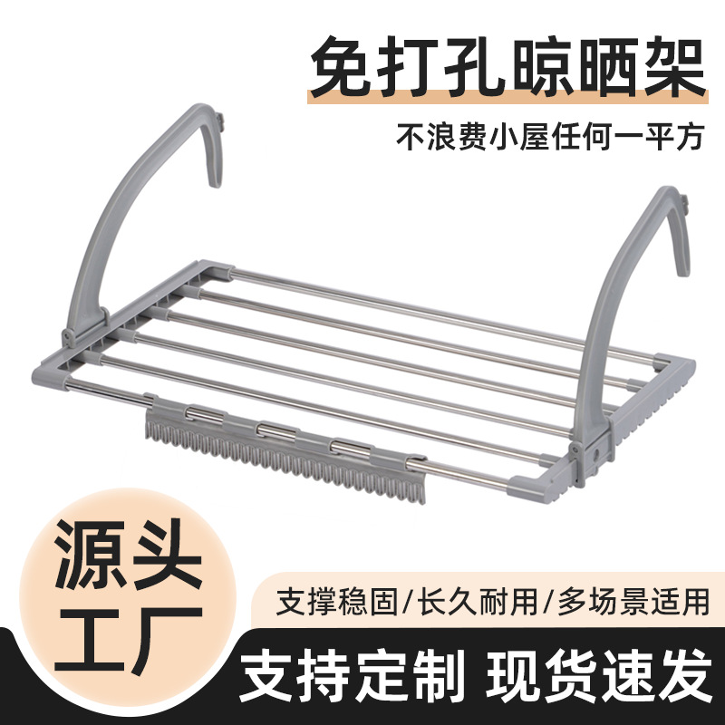 多機能バルコニー物干しラック穴なし伸縮ハンガーステンレス小型物干しハンガー窓辺干し神器