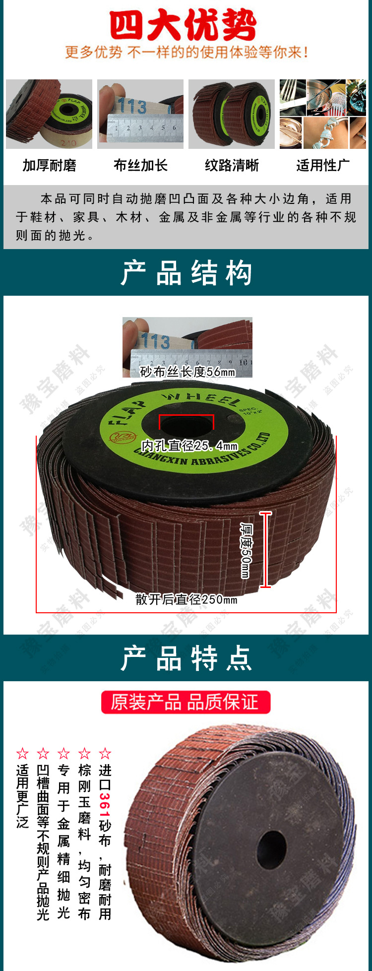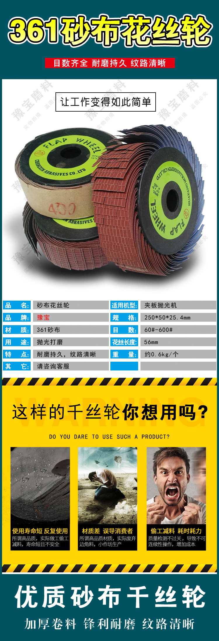 砂布千糸輪三菱361 10*2インチ研磨百糸千糸輪250*50mmブルー布