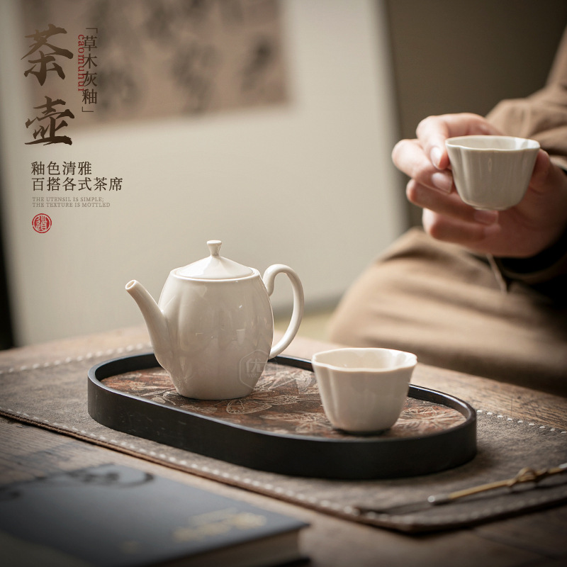 创意陶瓷花瓣壶草木灰茶壶功夫茶具中式家用复古小品壶带过滤单壶