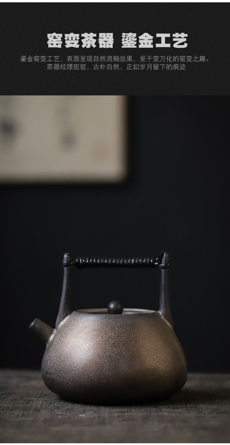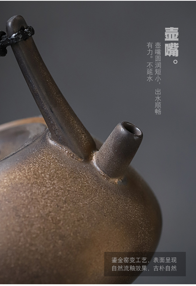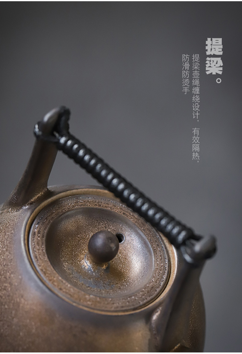 レトロな粗陶茶壺、小型提梁壺、金彩陶器単壺、功夫茶器、茶壺、陶器壺、カスタムロゴ入り