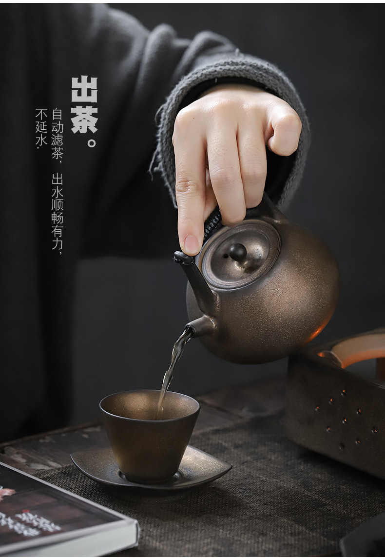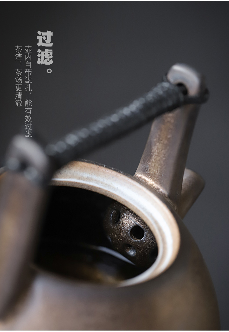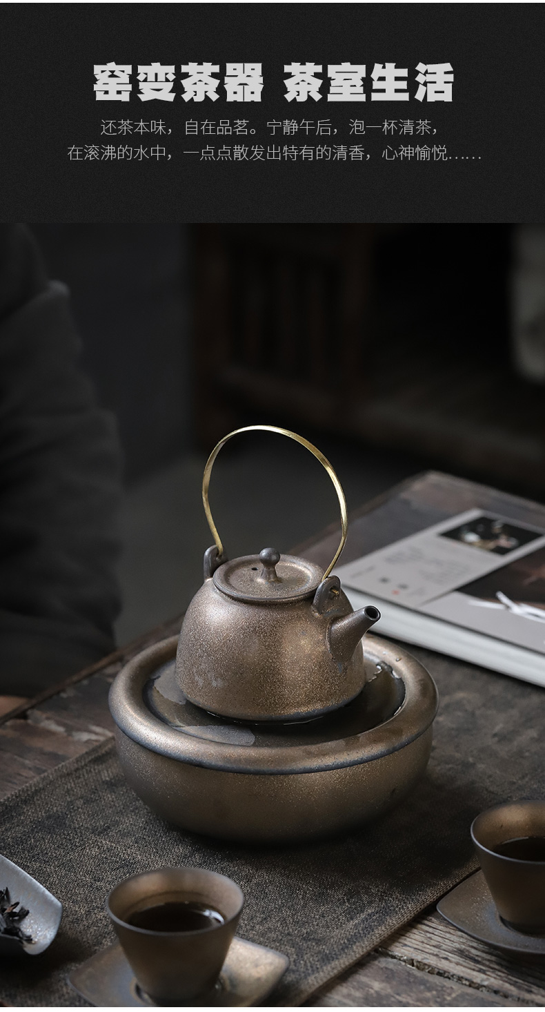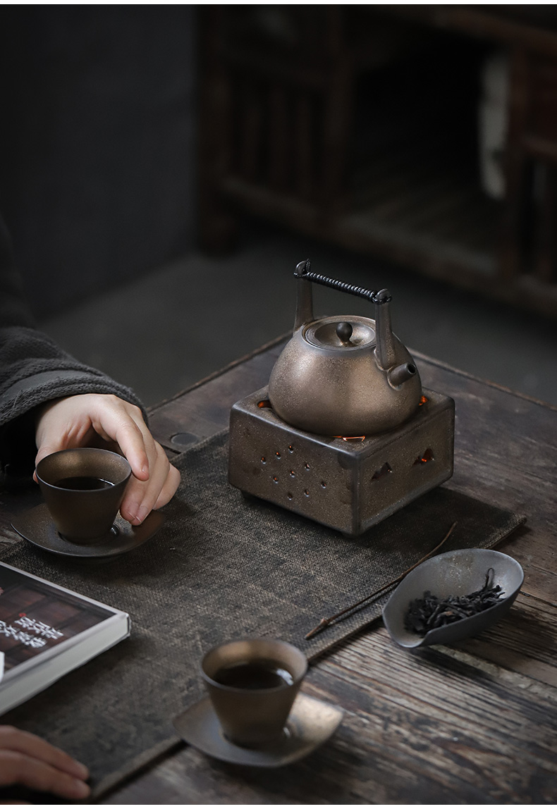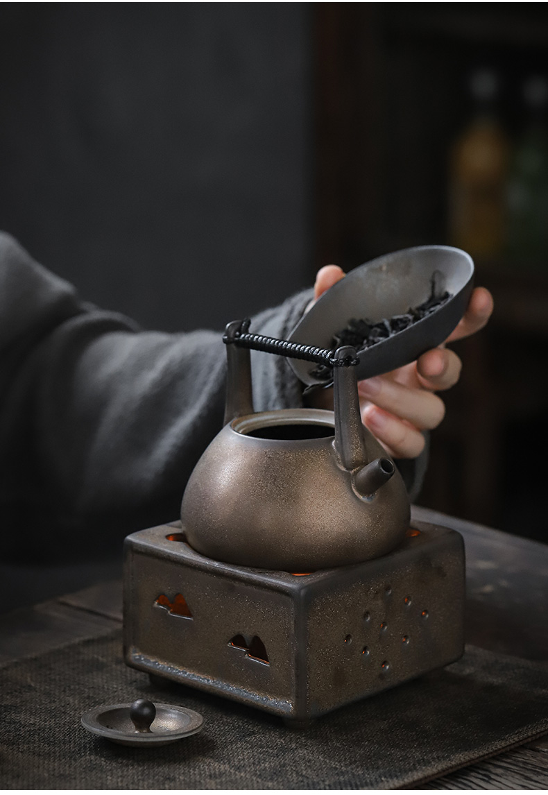レトロな黒陶提梁煮急須創意アルコール炉炭素炉電気陶炉通用急須粗陶泡急須囲炉