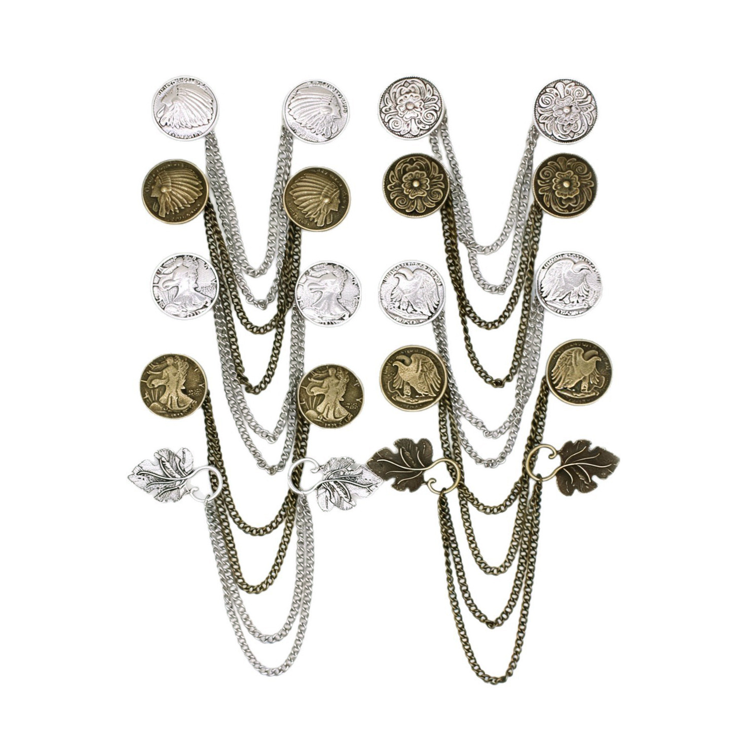 跨境新款链条胸针欧美复古图腾披肩防风链衬衣领夹西装胸花配饰