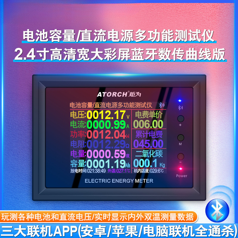 peacefair多功能彩屏库仑计电车电压电流电池容量表双向检测预警