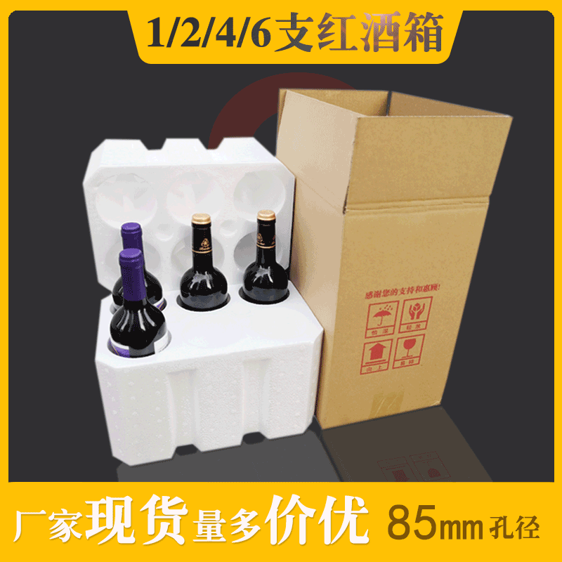 赤ワイン発泡箱カートン穴径85/92/100mm赤ワイン発泡包装発泡箱メーカー直供