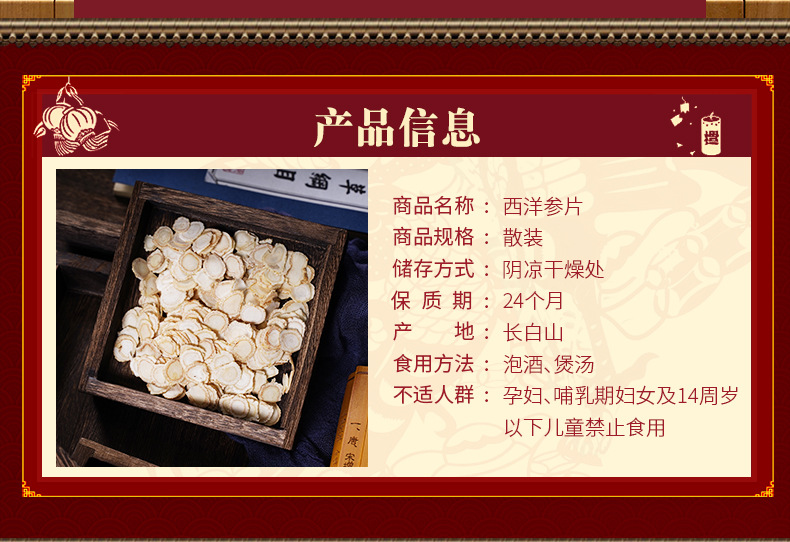 【西洋参スライス(バラ売り)】東北吉林省長白山産西洋参(250g以上)健康維持
