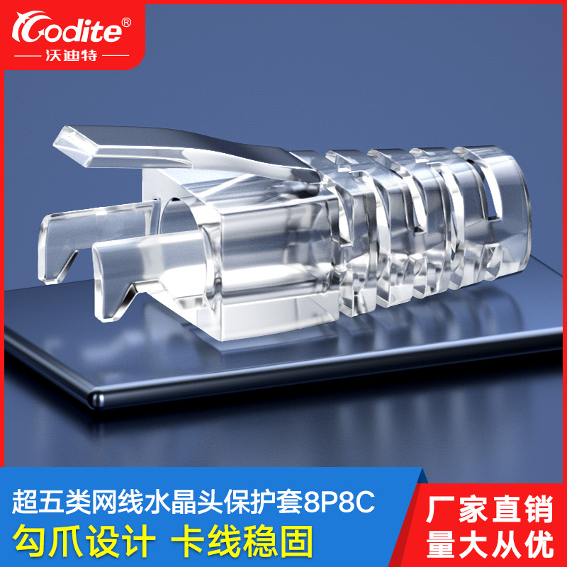 新素材カラー水晶ヘッドシース透かし彫りテール超五類六類爪異形保護カバーrj45ヘッドケーブルカバー