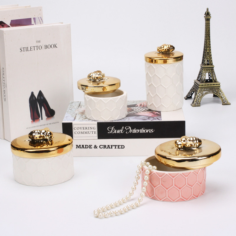 北欧の震える音の同じ種類の陶磁器の電気めっきのミツバチの首飾りの箱のデスクトップの置物の防塵のアイデアのかわいい収納の指輪の缶