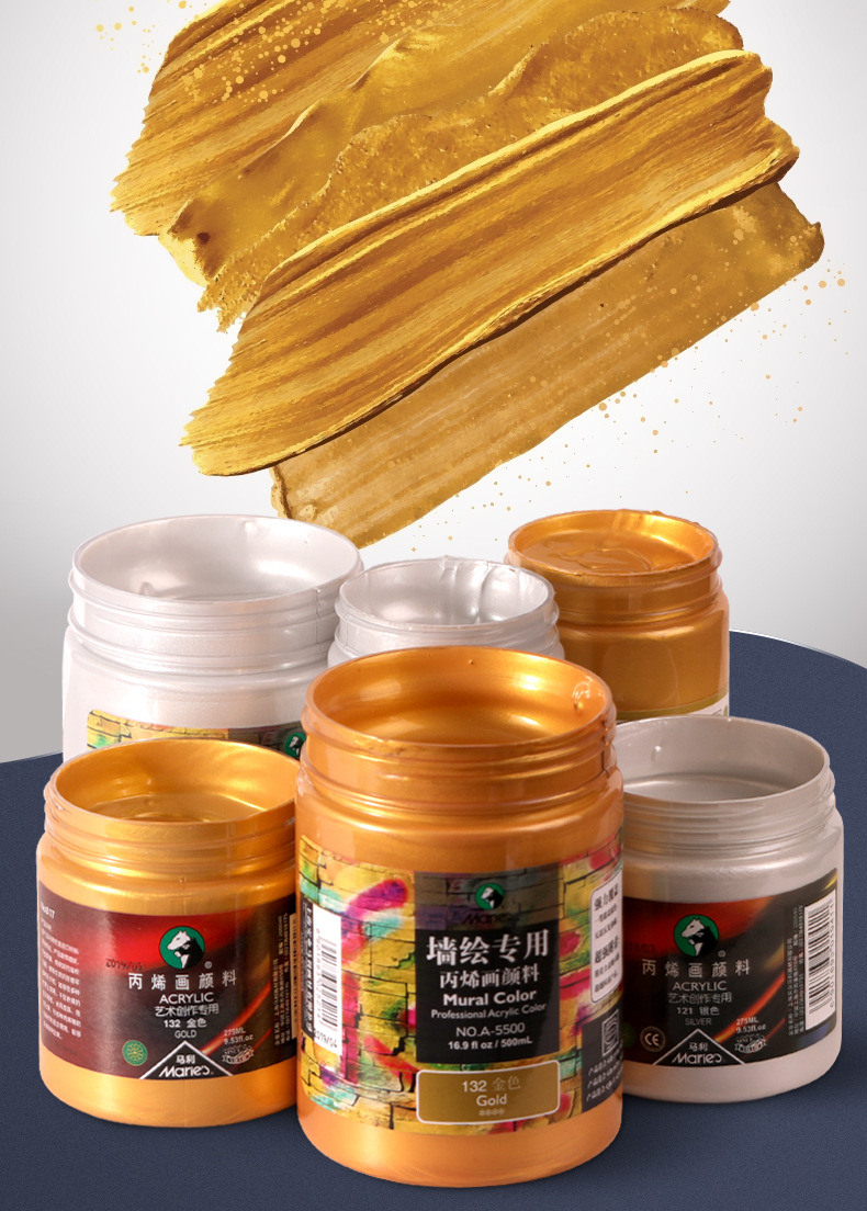 マーリーの金色のアクリルの絵の具の大きい缶の銀色の壁は手描きの金属色の仏光の金銀の丙の薄いdiyの絵の具を描きます。
