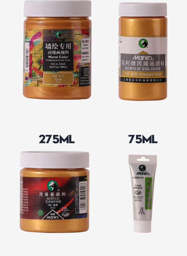 珠光丙烯颜料金色银色金属色100ml珠光DIY防水丙烯绘画颜料工厂直