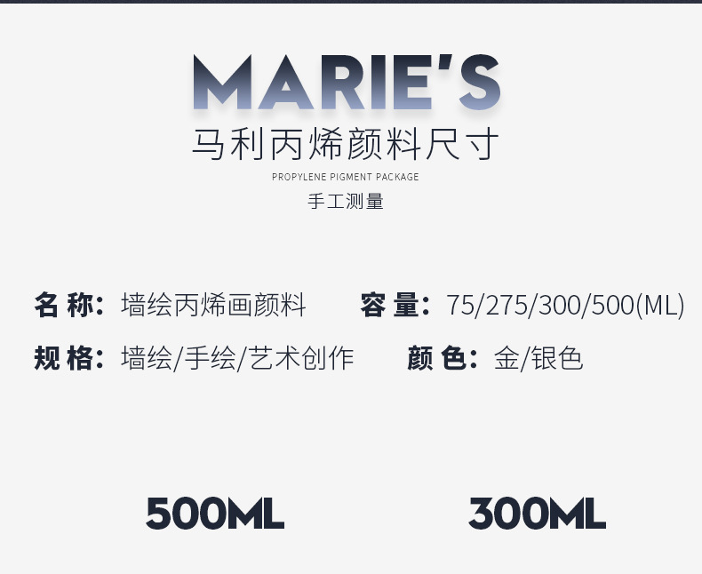 マーリー アクリル絵具 500ml 大容量 絵画用 テクスチャペイント 壁画 手描き 防水 グラフィティペイント アクリルセット 300ml