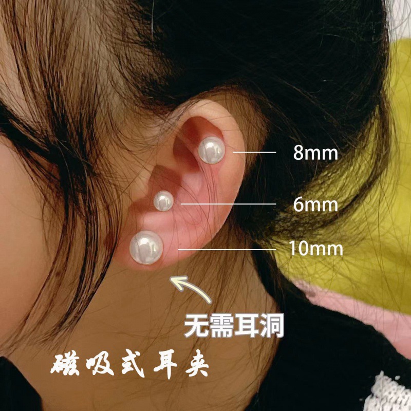 シンプルなパール磁気イヤークリップ、穴を開けない女性用耳介クリップ、磁石イヤリング、穴を開けないタイプ