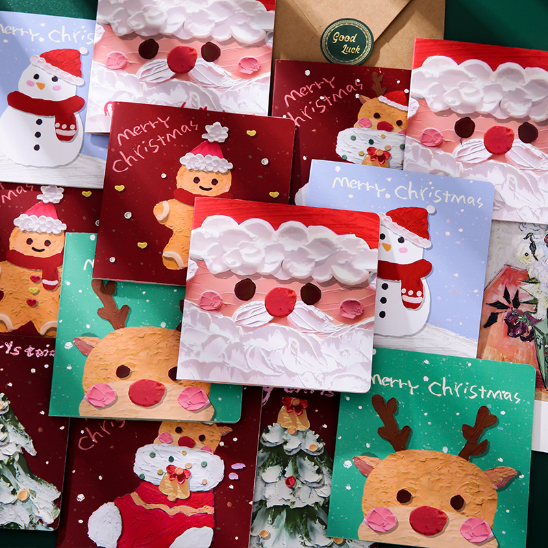 感謝のクリスマスカード油絵創意高級感diyプレゼント祝日先生祝福カード空白メッセージ