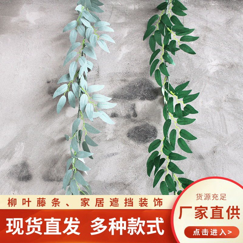 柳の葉の藤条森系の装飾の緑の葉の室内のプラスチックの花の結婚祝いの舞台の植物の葉の人工花の卸売りをシミュレーションします。